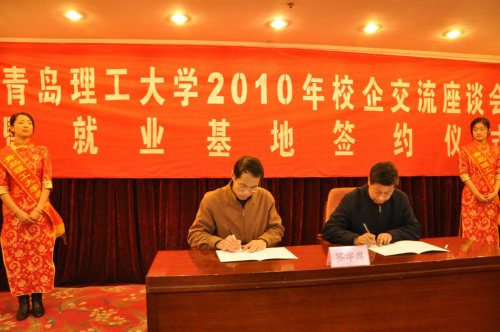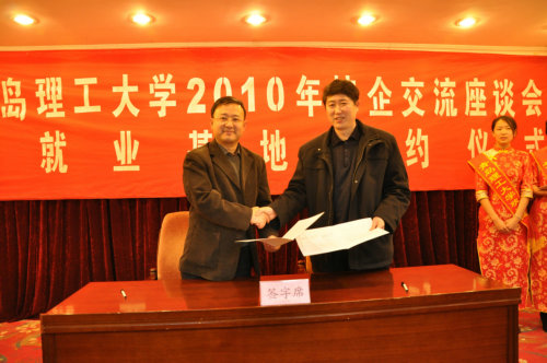 会议最后,管理学院院长赵金先教授、自动化学院院长卢燕教授、汽车与交通学院副院长王吉忠教授分别代表学院与青岛德才装饰集团、胜利油田思远工程安装公司、青岛华瑞汽车厂签订就业基地协议。