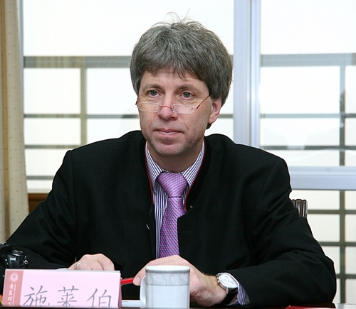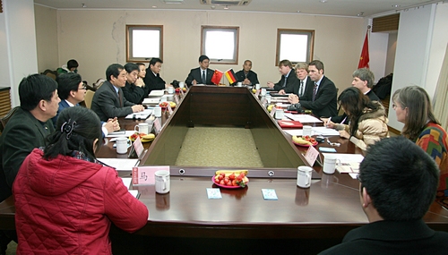 耿喜华书记向施莱伯博士一行表示欢迎,在简要介绍学校办学历史、人才培养、教学、学科和科研情况之后,耿书记表示,希望两校在相互信任与充分交流的基础上,依托各自学科、人才优势,加强交流和沟通,在教学、学术和人才交流等方面合作。