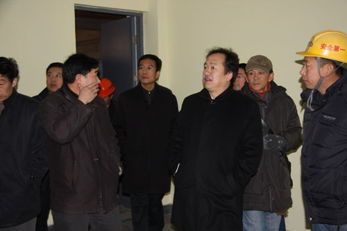 仪校长一行首先来到会议室,听取了新校区建设情况的汇报。随后来到教学行政办公楼,视察了行政办公区、教学区新做的样板间,现场听取了设计施工人员关于建筑装修和校园绿化等方面的汇报。每到一处,仪校长和建设者们亲切握手,对数九寒天在建设工地施工的同志们表示亲切的慰问。