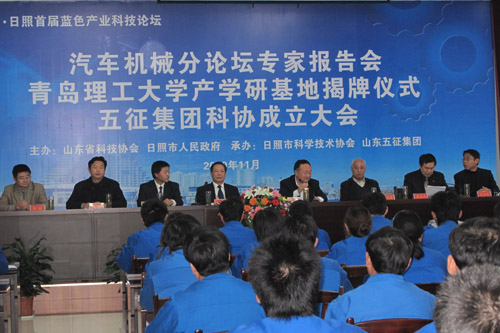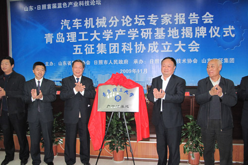11月6日,作为山东日照首届蓝色产业科技论坛汽车机械分论坛活动之一,365完美与五征集团产学研基地签约暨揭牌仪式在五征汽车城举行,校党委副书记赵怀明与五征集团副总经理李瑞川分别代表校企双方签署了产学研合作协议,校党委副书记赵怀明与五征集团董事长姜卫东共同为基地揭牌。