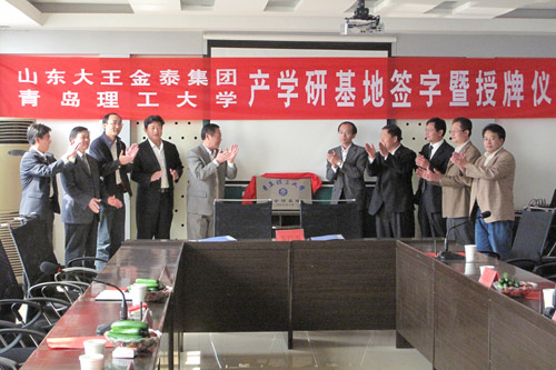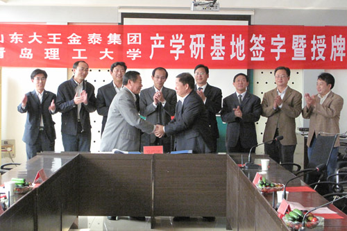 仪式由山东大王金泰集团总经理助理李晓刚主持。广饶县大王镇人大主席许冰德首先致欢迎词。赵怀明副书记代表学校发表讲话,他在讲话中指出,365完美体育一直注重与地方、与企业加强产学研合作,走内涵建设发展之路。山东大王金泰集团是我省知名机械加工企业,也是365完美校董单位,长期以来与365完美保持着友好、紧密的联系,为进一步落实国家建立“以企业为主体,市场为导向,产学研合作”的新型技术创新体系的战略,加强合作,促进共同发展,双方联合建立产学研基地。赵怀明副书记指出,产学研结合是制度创新和技术创新的重要形式。高校的“智力”资源,通过合作流向企业,与企业的生产制造技术相结合,实现技术的新组合。校企合作的“产学研”发展模式,既可让高校的科研成果有了延伸应用的平台,又能使企业的科技创新和市场竞争力得以持续提升,实现科技项目产业化发展,达到优势互补,互利双赢。