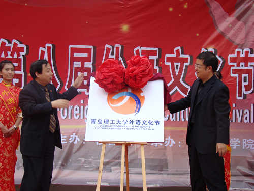校党委副书记杨向荣致开幕词,宣布文化节开幕,同时与外语学院院长刘春堂一同揭开了外语文化节徽标的红盖头。