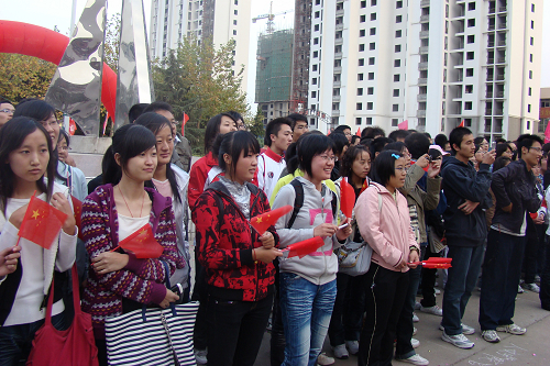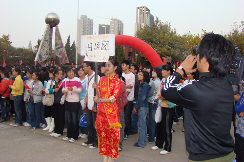 金秋十月,丹桂飘香;和谐神州,举国欢畅。10月21日下午,黄岛校区科学会堂前的广场上,华表庄严,彩旗飘扬,群情激昂。沐着时代的喜庆,伴着全运的激情,由校团委主办、外国语学院承办的第八届外语文化节隆重开幕,以“Days of Glory—China60”为主题的外语沙龙同时举行。