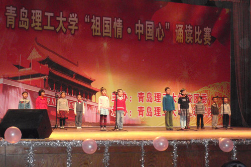 随着红色帷幕徐徐拉开,十几个小孩子组成的嘉宾朗诵团出现在观众面前,他们用稚嫩的童声有力而自豪地朗诵《祖国,我爱你》,博得了观众热烈的掌声。首先出场的是来自建筑学院的王晓丹同学,她以一首歌颂黄河的诗歌打响了头炮。第二名选手朗诵了艾青的代表作《大堰河——我的保姆》,全场深深为之动容。环境学院选送的展萌是本次大赛的一个亮点,她富有感情朗诵的《中华颂》,使观众深切体会到了身为中国人的骄傲与自豪,并将现场气氛推向了一个高潮。建筑学院和土木学院各自选送了一组多人诗朗诵,丰富了比赛形式,为观众带来了全新的视听盛宴。大赛接近尾声,建筑学院选送的王宇同学,他铿锵有力的诵读,给观众留下了深刻的印象。比赛最终决出一等奖两名、二等奖四名、三等奖六名。