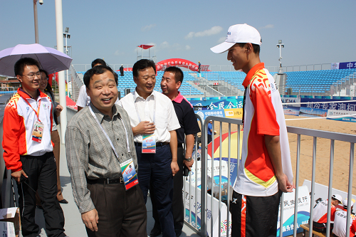 校领导赴金沙滩看望十一运沙排志愿者