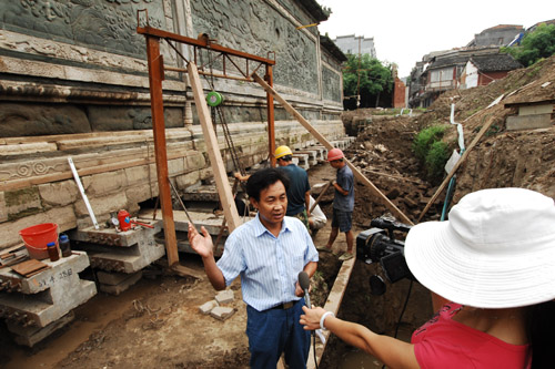 365完美岳渠德教授负责的襄阳王府绿影壁顺利完成了基础托换