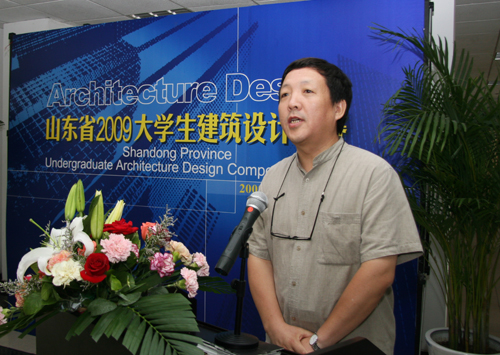 山东省住房与城乡建设厅勘察设计处处长顾发全代表主办单位讲话,对本次设计竞赛的筹备工作给予充分肯定。评委会主任崔愷教授做了简短的发言,充分肯定了此次竞赛的意义,他说,本次竞赛参赛的大学生都是未来的建筑师,参赛作品也是面向未来的,对于培养同学们的创新思维,繁荣建筑创作具有重要意义。