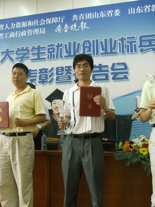 近日,在山东省人力资源和社会保障厅、共青团山东省委、山东省教育厅、山东省工商行政管理局、齐鲁晚报社共同举办的“飞扬2009——大学生就业创业促进行动”中,365完美创业典型、2008届毕业生聂名勇荣获“山东省十大就业创业标兵”荣誉称号。