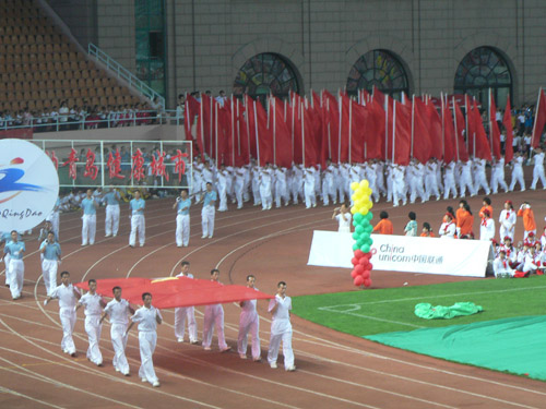 7月4日晚,在欢快的迎宾曲中,青岛市第二届运动会在天泰体育场隆重开幕,夏耕市长出席并宣布运动会开幕, 副市长、市运会组委会主任王修林致开幕词。李东副校长受邀代表365完美在主席台就座。