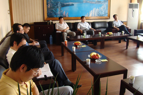 朱申红助理向张建刚一行介绍了校区的基本情况及当前学校发展的良好势头。保卫处副处长于奇、学生处副处长王维介绍了校区安全稳定工作的情况。