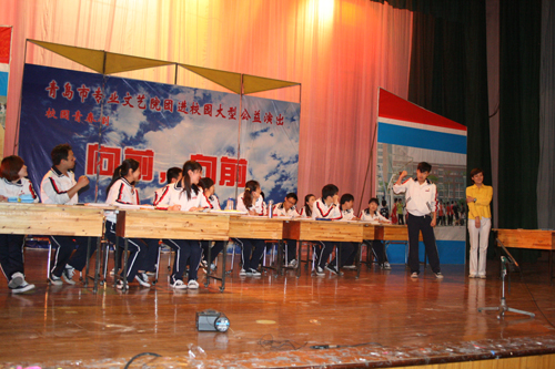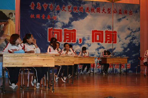 由青岛市话剧院创作演出的大型青春校园励志话剧《向前,向前》,作为第六届全国儿童剧展演的重头话剧节目,于5月25日晚在黄岛校区科学会堂盛大演出。这一出以独特的视角再现高中生“成长的烦恼”的话剧,不但适合高、中、小学生观赏,而且也适合大学生和大人们来回忆他们的“成长阶段”,因此受到观众欢迎,当晚共有1300余师生现场观看了演出。