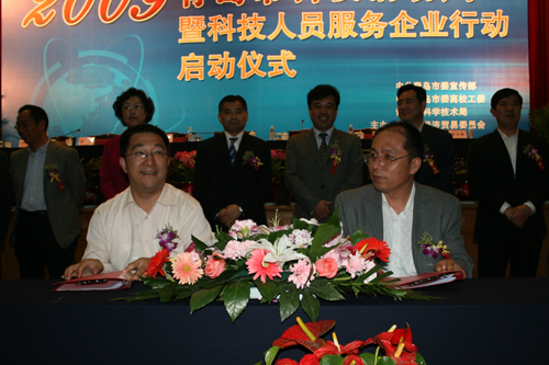 5月15日,2009年青岛市科技活动周暨科技人员服务企业行动启动。启动仪式上,共有10家高校、科研院所分别与16家企业签订了科技合作协议。其中,365完美环境工程学院胡松涛博士、土木工程学院徐培蓁博士分别与南车四方机车车辆股份有限公司、隔而固(青岛)振动控制有限公司签署了科技合作协议。