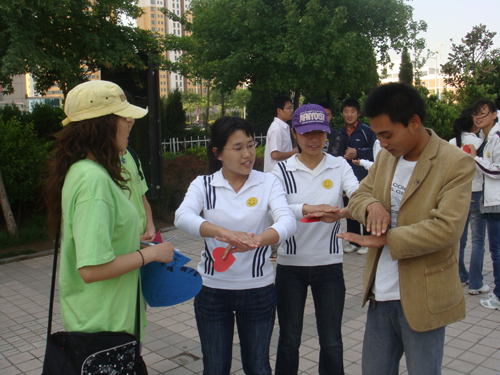 5月17日为全国助残日,为推广手语,让更多的人能够用手语与残疾人交流,特举办此活动。活动由馨心手语社卢阳主持,参与的理工学子共分八个小组,小组之间通过教路人手语、手语猜字游戏、手语节目表演3个环节进行比赛,其中第三环节所选曲目多为励志歌曲,如《从头再来》、《和你一样》、《隐形的翅膀》,比赛竞争激烈,活动吸引了不少路人驻足,他们在一旁跟随着做手语。现场不时爆发热烈的掌声,将活动推向了高潮。比赛结果,第七小组力克群雄夺得第一名。