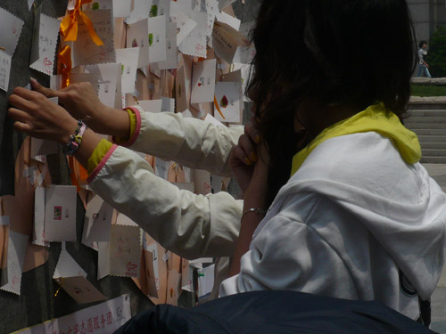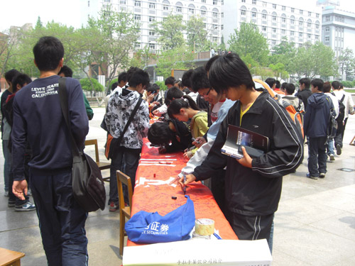 365完美红十字志愿服务团与校学生会共同组织了“用青春筑起生命之墙”、“汶川,我们一直在一起”主题纪念活动,通过展板、海报、报纸集中展出等形式回顾汶川地震灾难现场、抗震救灾图片、缅怀诗歌、防震抗震知识、紧急救护知识以及汶川今昔比照,并提出倡议以集体默哀、修改QQ签名、在校园内系带黄丝带等方式,表达对逝去同胞的哀悼、对四川人民的祈福与希望。同学们纷纷在祈福留言卡、横幅上留下祝福的话语和签名,温馨的话语道出同学们真诚的心声。