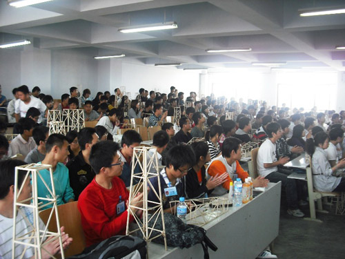 本届结构设计大赛得到学生处、团委、国资处、后勤等部门的大力支持,共有来自土木、建筑、机械、环境、高职等各学院的188支队伍共600多人参赛。参赛人数之多,规模之大,为历届之最。(土木学院)