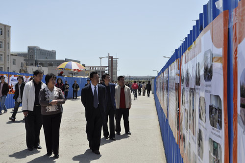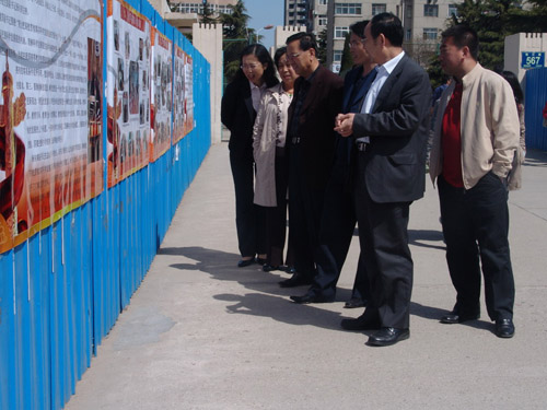 4月17日,由学生处主办,人文社科学院承办的“学习实践科学发展观”大型图片展在黄岛校区展出。李东副校长、校长助理朱申红、黄岛校区办公室副主任梁红、学生处副处长王维、校团委副书记王龙等领导来到展览现场,观看了展览。人文社科学院党总支书记王众臣、副书记林桂梅等领导陪同李东副校长、朱助理一行观看了展览。