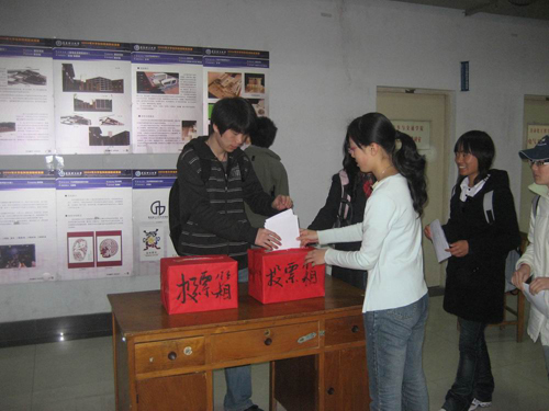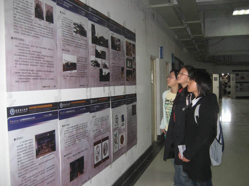 4月17日, 2008年大学生科技创新成果展暨十大科技创新成果评选活动在黄岛校区2教一楼大厅举行,李东副校长、朱申红校长助理,校区办公室、学生处、教务处等部门负责人参观了大学生创新成果展并对科技创新成果进行了评选,校团委王龙副书记对本次展评活动做了简要介绍。