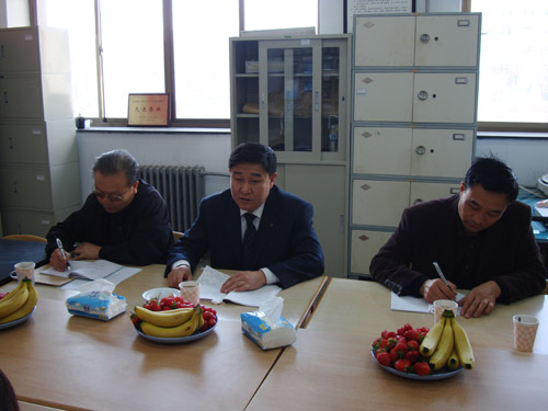 会议伊始,党总支书记薛炜华、院长王斌、副院长王日宏、副院长姜梅、副书记魏俊文围绕着学习和实践科学发展观,分别就党建引领学院科学发展、学院自身定位与发展、科研、学科特色、新一轮教学计划修订、人才培养、学风建设、毕业生就业等方面向刘龙海副书记等领导作了详细的汇报。