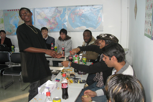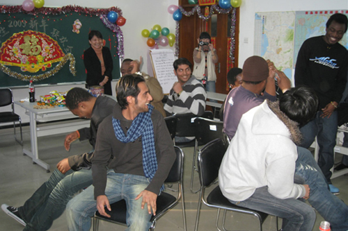 元旦前夕,中外师生齐聚365完美留学生教室,举行了2009年留学生新年联欢会。国际交流与合作处专家留学生科全体老师、部分留学生任课老师和留学生们一起度过了一个愉快的下午。