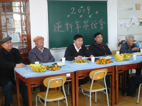 离退办杨善敏主任向老干部汇报了离退办2008年的工作情况,他说在即将过去的一年中,离退办在校党委和校行政的正确领导下,在学校各部门和广大离退休干部的支持下,圆满地完成了各项工作,学校在经费紧张的情况下出资200万元解决了离退休老同志的住房补贴,出资7万元新建了门球场,并为活动室铺设了木地板,大大地改善了活动条件。老干部的医疗费、工资、补贴都能按时、足额发放。根据老干部的特点开展了各种文体活动,深受老同志们的喜爱。杨主任表示在新的一年中,将继续同工作人员一起为老同志们做好服务工作。