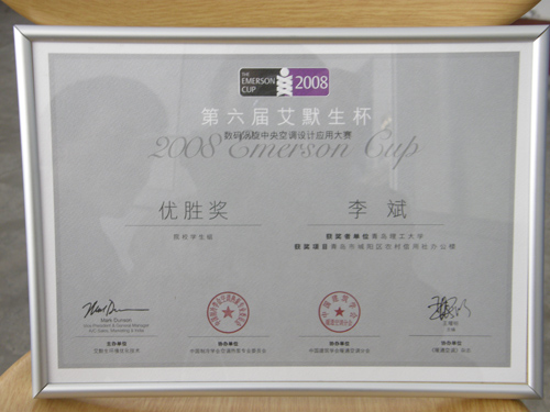 2008年“爱默生杯”第六届数码涡旋中央空调设计应用大赛由爱默生环境优化技术主办,中国制冷学会、中国建筑学会暖通空调分会、中国制冷学会空调热泵专业委员会、《暖通空调》杂志协办。
