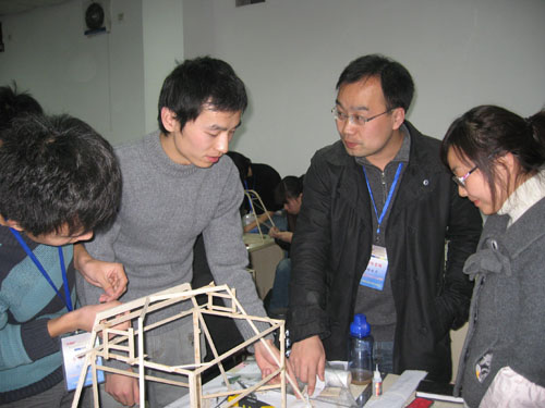 本次邀请赛要求参赛选手用不同规格的木条制作出具有一定空间尺寸的结构模型,承受竖向及水平荷载,以模型自重轻、计算精确、加工精细等因素为评判依据。365完美自接到参赛邀请后,得到了各级领导的关心与支持,土木工程学院及时购置比赛材料和设备进行了队伍选拔,并选派具有丰富经验的专业教师进行指导,学院领导临行前专程为参赛队伍送行。比赛期间,土木工程学院党总支副书记宋玲就365完美大学生科技创新工作与其他学校进行了交流,土木工程学院副院长王燕教授代表学校从本届比赛组织者河海大学接过了象征主办方的锦旗,365完美将于2009年举办第六届华东地区结构设计大赛。