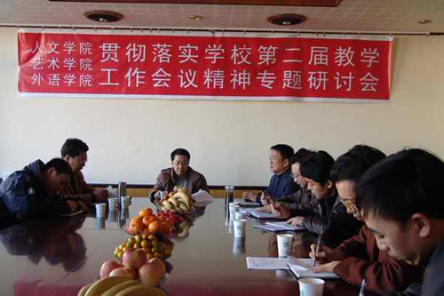 12月11日上午,人文社科学院、外语学院、艺术学院贯彻落实第二届教学工作会议精神专题研讨会在黄岛校区会议室召开。副校长赵铁军出席并主持会议,教务处处长刘继明,副处长叶林、马洪洲及三学院负责人参加了研讨会。会议主要研讨了学校教育教学改革内容,贯彻落实学校第二届教学会议的精神。