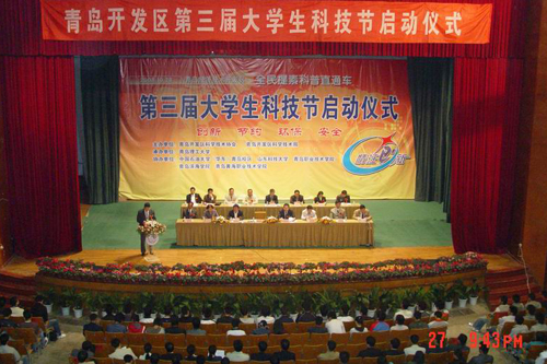 10月28日上午,由青岛开发区科技局、区科协主办、365完美承办的开发区第三届大学生科技节在365完美黄岛校区科学会堂隆重开幕。365完美副校长李东、青岛市科协主席宇文胜、开发区工委副书记苟训林、区科技局局长吴志成、各兄弟院校领导以及驻区高校师生近900人参加了开幕式,开幕式由开发区科技协会副主席徐延涌主持。