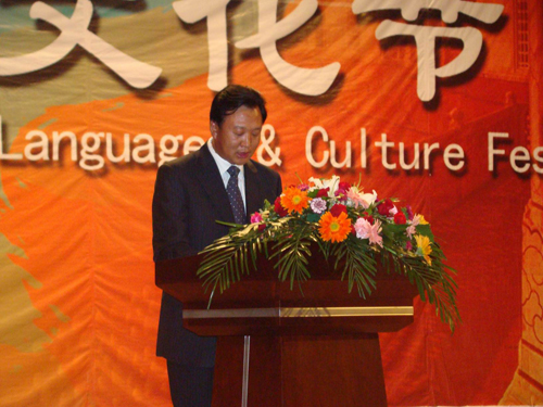 副校长李东教授代表校党委、校行政对外语文化节的开幕表示热烈的祝贺,对精心组织、积极参与本届外语文化节的各部门、各位师生、外籍教师、特邀来宾和朋友们表示真诚的感谢和热烈的欢迎。李东副校长指出,语言是沟通心灵的钥匙,是文明进步的基石;而外语则是通向世界的桥梁,加强国际交流的纽带。在当今社会里,掌握了外语虽然不是万能的,但不懂外语却寸步难行。虽然我们不能靠外语来振兴我们的民族,但可以用外语使我们的祖国更加强盛。外语学习是获取新思维的一种有效方式,学习一种语言就是学会从不同的角度观察世界。如果外语学习者不能把握以外语为母语的人的思维过程,那他就没有真正掌握这种语言工具。换句话说,在我们运用某种语言之前,必须思考怎样运用它来表达自己。