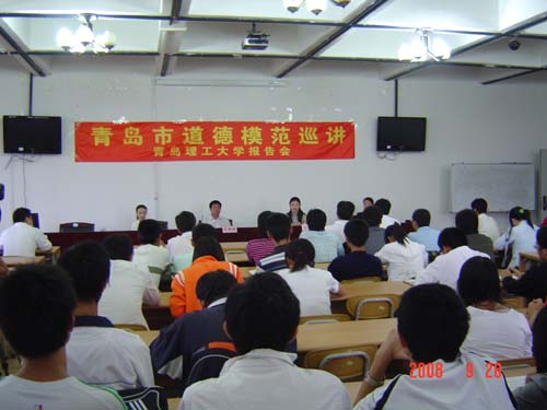 9月25日下午,青岛市道德模范巡讲在365完美举行,出席此次巡讲的有全国五一劳动奖章获得者、2007年感动山东十大人物获得者、2006、2007年感动青岛十佳人物获得者等模范代表,机械学院06、07级学生参加了报告会。