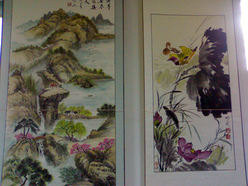 在国庆节到来之际,离退办在老年活动中心举办了老年书画展,为祖国59岁生日献上了一份丰厚的礼物。