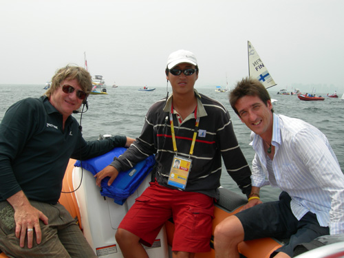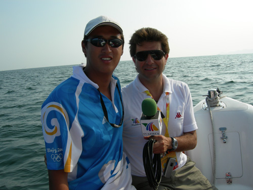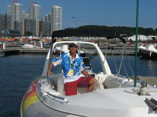 肖飞老师是365完美体育部奥帆赛四名志愿者之一,他所在的媒体船团队,主要负责海上5个场地比赛实况转播、新闻采访、摄影摄像工作的船艇驾驶。每天要安全及时、准确无误地将BOB媒体记者送到指定的海域,既不影响比赛,又要最近距离的拍摄比赛的精彩画面,直播或转播到世界各地。作为记者,他们希望越靠近比赛场地越好,恨不得像篮球记者坐在篮下拍摄一样,因此疯狂的不顾一切的催促要求。但是规定不允许靠近比赛场地,否则一但比赛船只冲了过来,船只相撞是小,影响比赛是大,这种矛盾天天都在发生。我们不得不一面控制好船只,尽量靠近比赛,做到“有朋自远方来”的热情,一面通过翻译,不厌其烦的一遍遍给他们解释比赛规则和大会的规定,最后达成谅解使他们接受,和谐共处,共同完成任务。每次返航,当我们看到他们竖起大拇指称赞和感谢我们时,就在心底里感到作为一名中国志愿者的自豪。