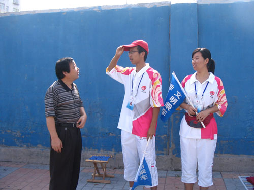 “没关系,参加志愿服务嘛,这点辛苦没关系。”