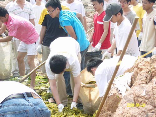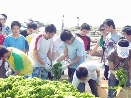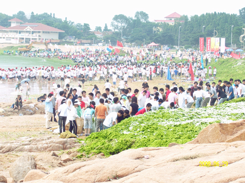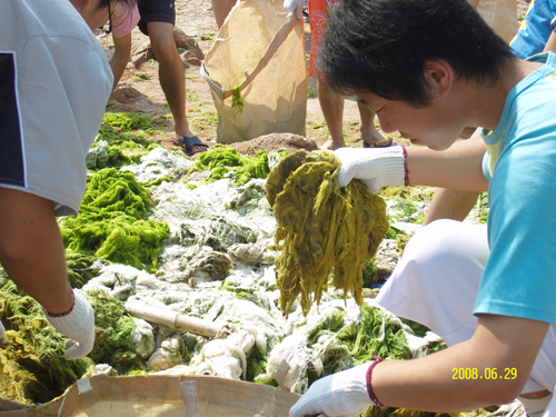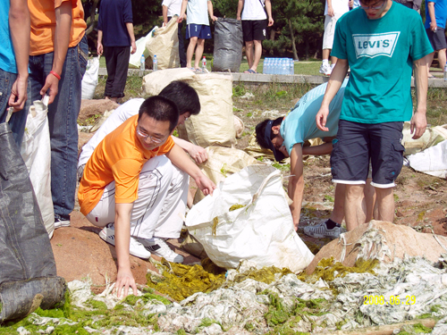 近日来,青岛市海域浒苔聚集。为响应青岛市政府号召,保证青岛奥帆赛顺利举行,365完美分批派出同学前往浒苔聚积区进行清理工作。