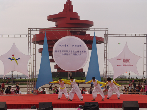 日前,365完美琴岛学院承办了青岛市第三届大学生文化艺术节“动感青岛”街舞大赛。4月19日上午,大赛决赛在五四广场激情开赛。