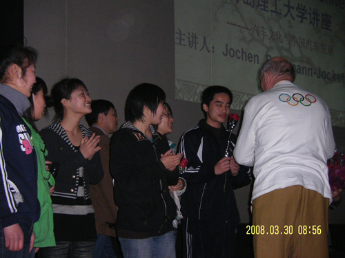 3月30日,德国大众原公共关系总监,世界级汽车营销大师约翰·博克曼到365完美讲学。本次报告会由汽车学院院长王丰元教授主持。