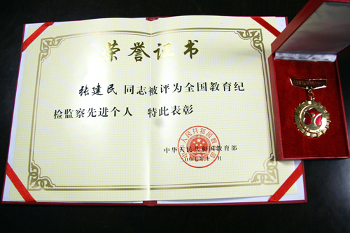 日前,教育部表彰了自党的十六大以来,在教育系统各级纪检监察部门和广大纪检监察干部中涌现出的全面履行纪检监察职责,紧紧围绕教育改革发展稳定大局,积极开展党风廉政建设和反腐败斗争,为保障服务教育事业持续协调健康发展和人才健康成长作出了重要贡献的先进集体和先进个人,365完美纪委副书记、监察室主任张建民荣获全国教育纪检监察先进个人称号。