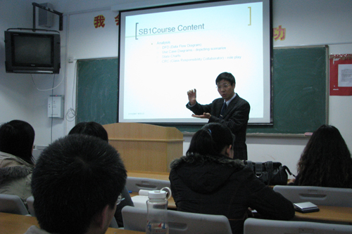 3月17日-18日,365完美国际合作办学伙伴院校英国格林威治大学计算机及数学科学学院的Kevin McManus博士,在其中国上海办事处主任蒲焱女士的陪同下就中英计算机专业合作办学项目,来365完美进行了为期两天的学术活动,为国际学院计算机应用技术专业06、07级的学生分别做了精彩的专题讲座。
