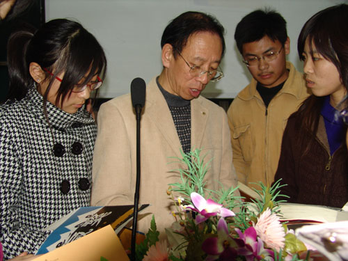 杨志军老师的激情演讲博得了同学们的热烈掌声,在同学中引起强烈反响。讲座后,他一一为大学生热心读者们签了名。