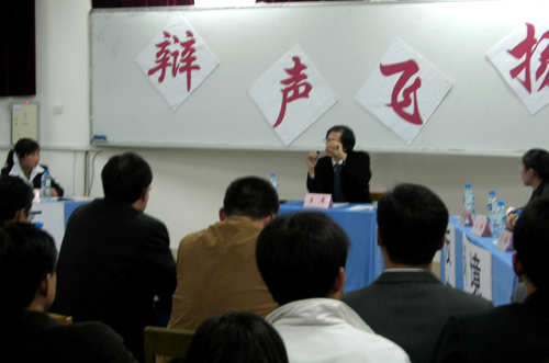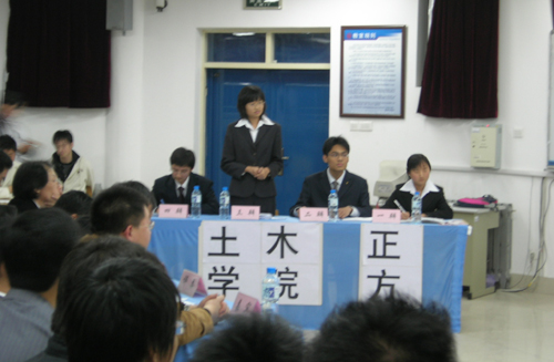 本次辩论赛由校团委主办,共有9个学院9支代表队报名参加了角逐。决赛当晚,由辩手李瑞林、马烁、徐鹏、张晴霞、王培组成的土木工程学院辩论队,在朱艳老师的指导下,舌战群儒、技压群雄,以犀利的言辞、精巧的思辨技巧论证了“知难行易”的观点,以卓越表现夺得大赛冠军。李瑞林同学凭借其缜密的思维、流畅的口才获得本场最佳辩手。环境与市政工程学院获得亚军。人文学院董国超老师从专业角度对本次辩论赛进行了点评。