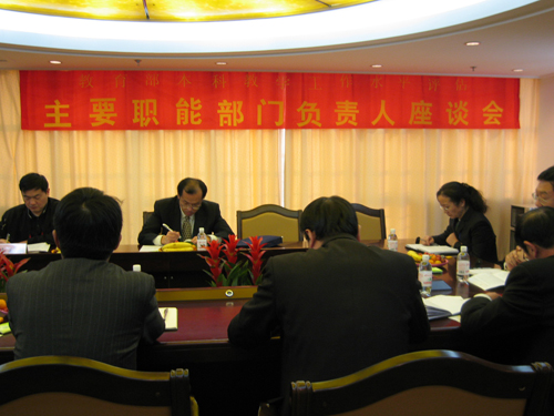 各职能部门负责人根据会议要求,就本部门在服务本科教学工作中所做的工作进行了汇报,并围绕各部门职能以及评估相关问题展开了讨论。