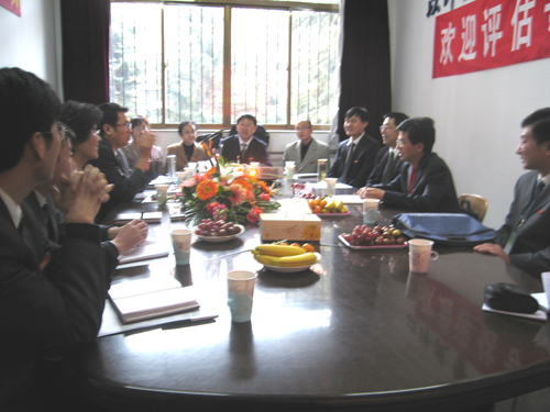 在环境学院,院长吕谋从学院概况、工作思路、本科教学工作中心地位、教学特色与效果、下一步工作打算等五个方面做了汇报。