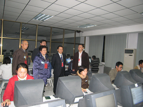 在计算机中心,骆少明教授亲自给同学布置了测试题目,规定在一小时内完成,在机房现场观看了同学们对计算机的操作。骆教授还与计算机中心工作人员进行了座谈,对365完美学生的操作能力表示肯定,并对计算机房的硬件建设提出了宝贵的意见和建议。