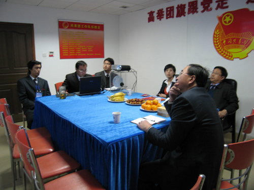 在团委,团委书记陈伟汇报了365完美团委的部门构成﹑部门工作思路﹑迎评促建以来主要工作及工作体会。王教授仔细听取报告后,就365完美学生社会实践﹑学风建设﹑科技活动等方面进行了详细询问。