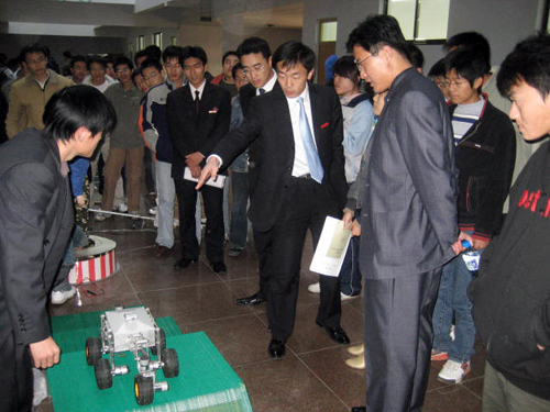 此次交流会中,山东科技大学学生带来的科技创新成果也颇为引人注目。仿虾越野车的越障能力,让在场观众看到了当代大学生的动手能力和创新意识。智能交通机器人利用自身的太阳能蓄电系统为其供能,利用H42B6传感器实现了360度转身、抬臂、弯臂、转臂等动作的准确定位。