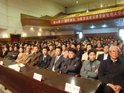 11月6日、7日下午2:30,教职工本科教学工作水平评估誓师大会先后在四方和黄岛校区召开,校党委书记耿喜华主持会议,校长仪垂杰作动员报告(讲话全文附后),校全体党政领导出席会议,全校教职工、教学督导员参加了会议。