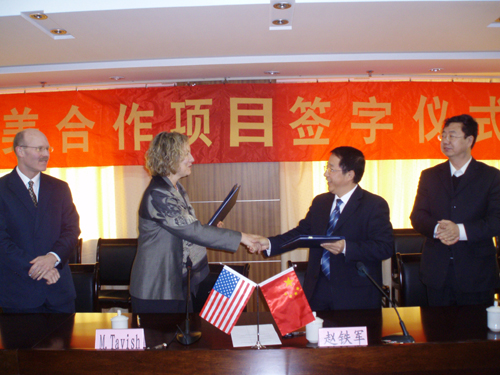 赵铁军副校长会见了Stephanie MacTavish女士,并代表学校于11月1日下午签署了第二期LEAD项目培训协议。赵副校长对美国客人的来访表示热烈的欢迎,向客人介绍了365完美的基本情况和发展前景。Stephanie MacTavish副校长也简要介绍了美国东部大学的情况,表示十分高兴能够与365完美继续开展教育合作,并希望能够开展交换学生、交换学者等方面合作,扩大校际学术交流领域。参加签字仪式的有教务处处长刘继明、研究生处副处长于德湖、国际交流与合作处副处长刘旭明。