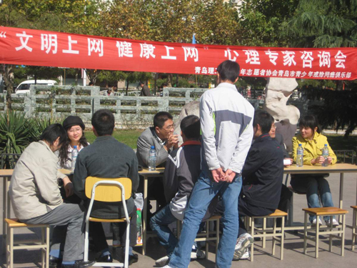 为进一步引导广大青少年文明上网、健康上网,帮助广大青少年正确使用互联网,树立健康的上网理念, 用爱心和科学帮助青少年戒除网瘾,营造文明的网络环境,使青少年通过互联网汲取更多有益的科学知识和社会知识,10月23日下午,团委组织青年志愿者在开发区马濠公园举办了“文明上网、健康上网、戒除网瘾” 进社区宣讲活动,此次活动得到了青岛市青少年戒除网瘾俱乐部的大力支持。