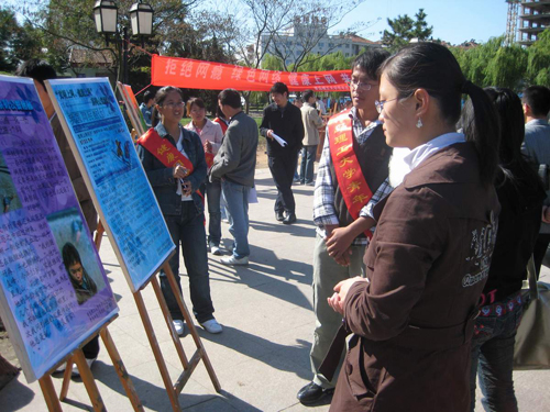 志愿者以海报、横幅作为宣传工具,针对如何文明上网、健康上网、戒除网瘾等问题向社区居民进行了细致的解说,邀请相关专家对沉溺网络的青少年进行咨询和辅导,并开展“文明上网自律公约”主题知识竞赛活动,现场观众积极参与,气氛热烈。其间穿插的文艺表演将整个活动推向高潮。最后志愿者们组织了“文明上网、健康上网、戒除网瘾”千人签名活动。365完美青年志愿者协会的10名志愿者还分别与10个上网成瘾的青少年家庭结成对子,未来将定期通过电话、电子邮件、家访等形式与青少年进行沟通,与家长一道帮助孩子摆脱网瘾侵扰。