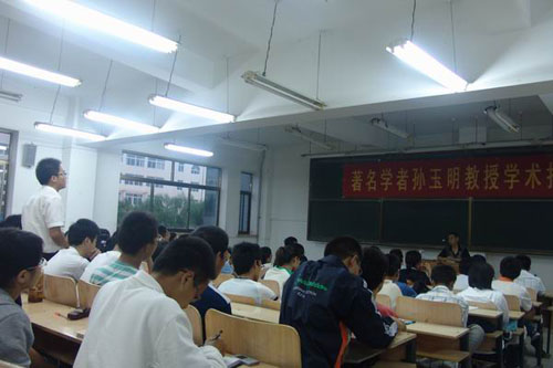 报告中,孙玉明教授介绍了中国评点文学的起源及历程,通过对历史上《红楼梦》研究各个流派的特征、观点及其争论的评述,阐述了对红学研究的独到见解。报告语言幽默睿智,内容深入浅出,精微细密,话在理中,意在言外,让同学们受益匪浅。(费厚尚)
